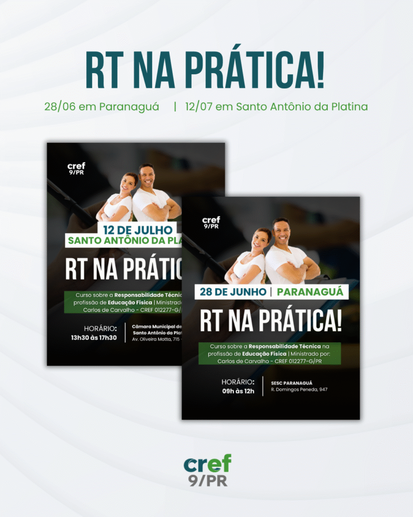 O curso sobre Responsabilidade Técnica na profissão de Educação Física está chegando a Paranaguá (28/06) e Santo Antônio da Platina
