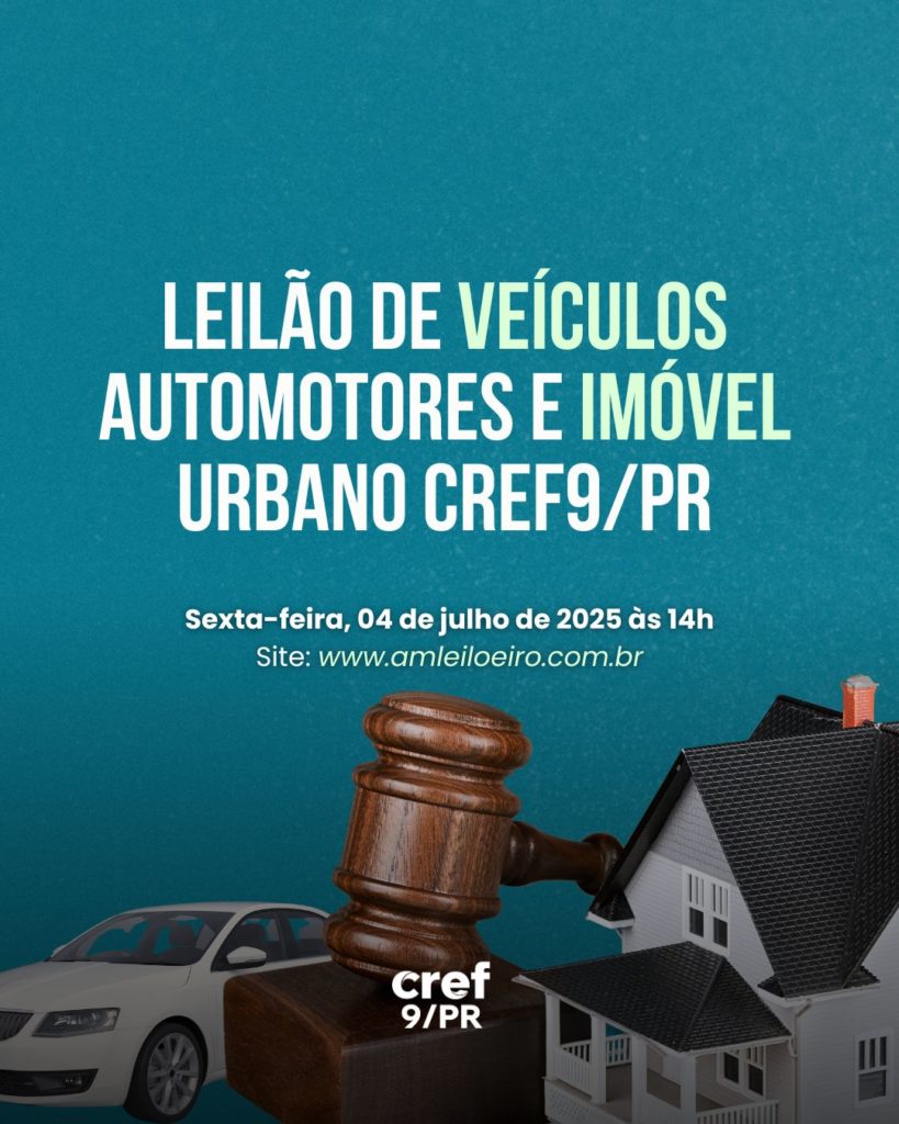 O Conselho Regional de Educação Física da 9ª Região – CREF9/PR realizará leilão administrativo eletrônico no dia 04 de julho