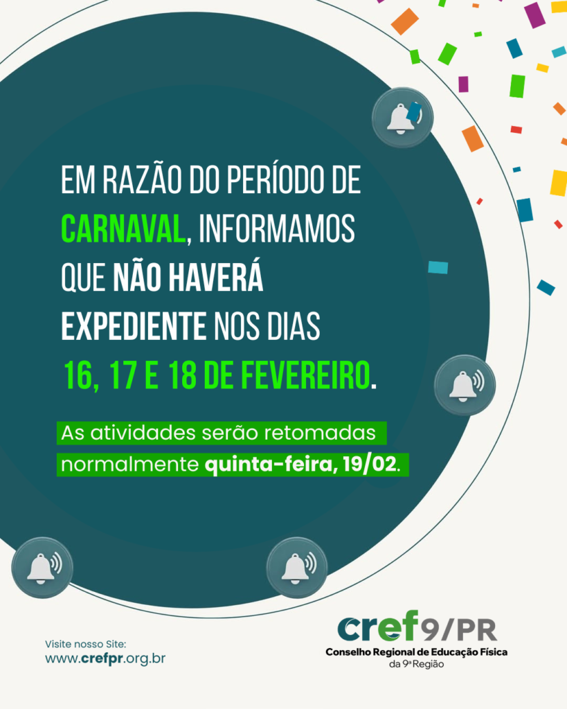 Em razão do período de Carnaval, o CREF9/PR informa:
